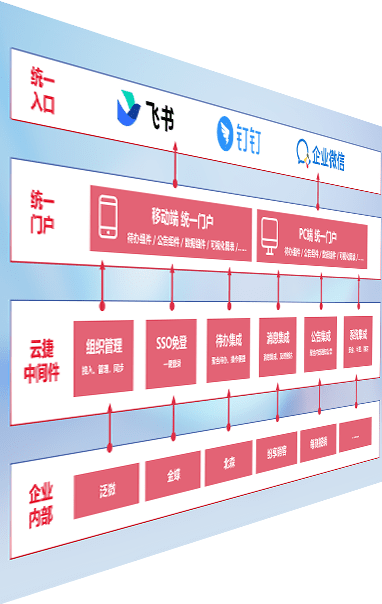对协作平台提供支持服务,,,支持企业应用与协作平台对接,,,,包含组织同步、、、消息集成、、、、待办集成等。。。支持目前主流的协作平台:钉钉、、企微和飞书。。